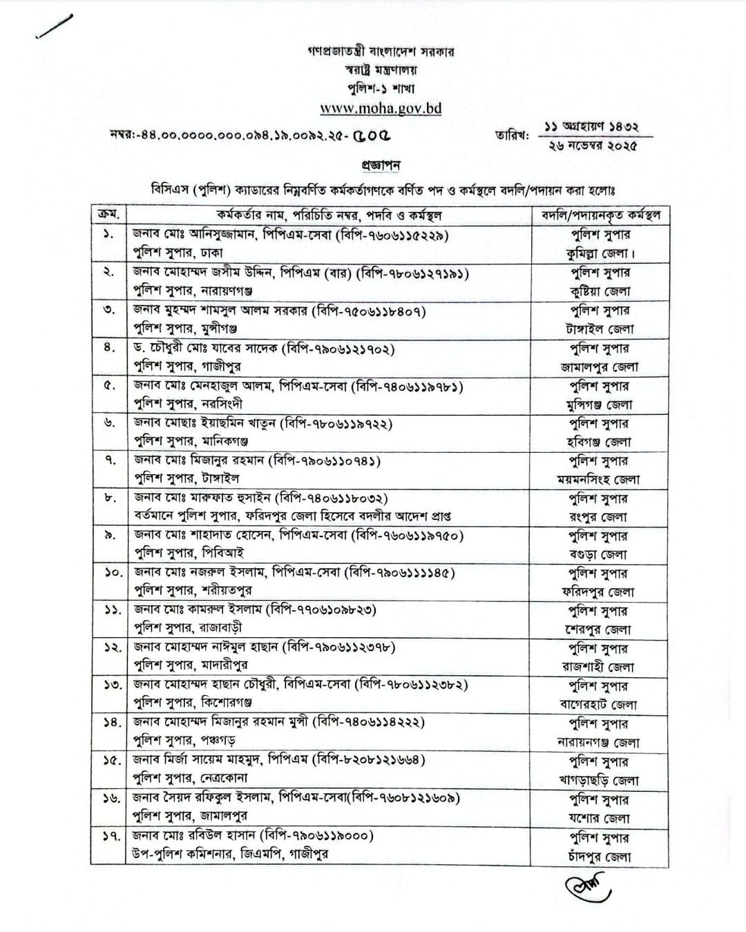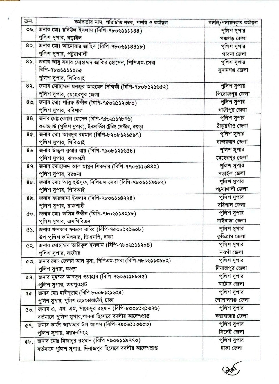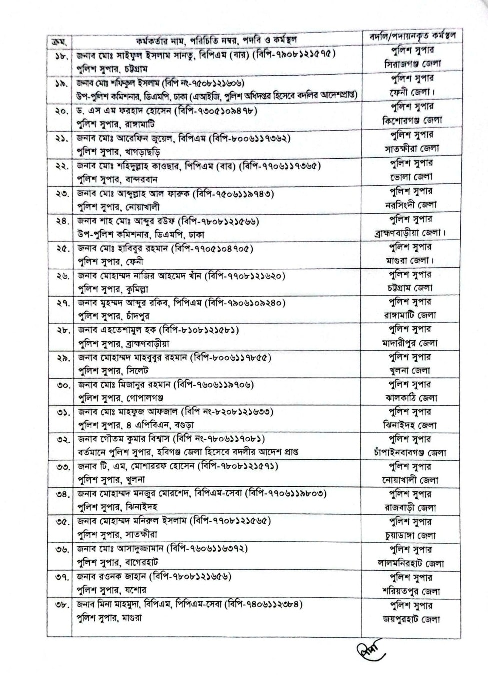 লটারির মাধ্যমে চূড়ান্ত হওয়া এসপিদের তালিকা: