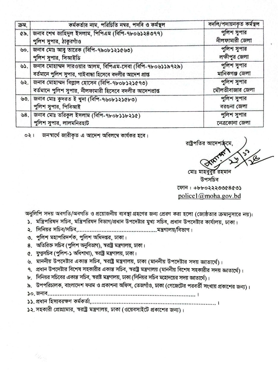 লটারিতে চূড়ান্ত হলো ৬৪ জেলার এসপি